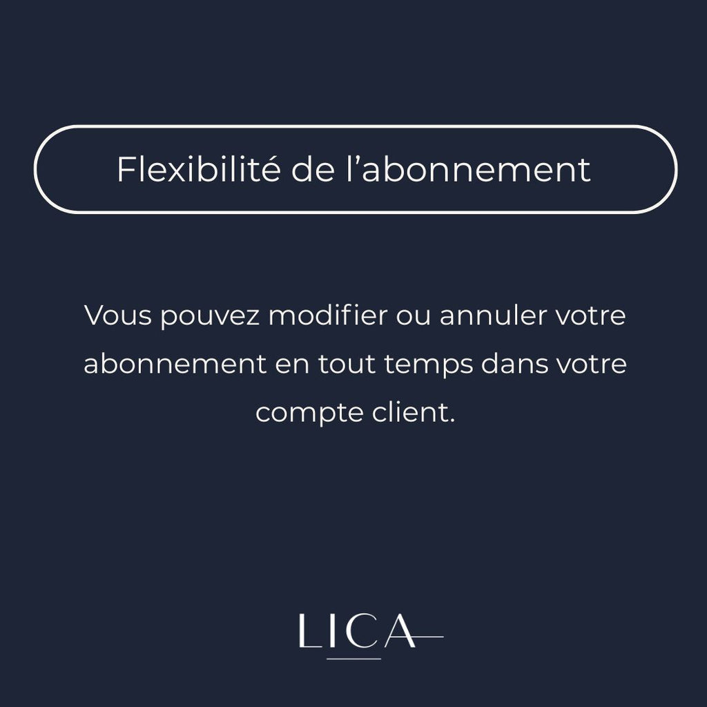 LICA peut ajuster les prix, les fréquences ou les modalités d’abonnement. En cas de modification, un avis sera envoyé par courriel avant la prochaine facturation.