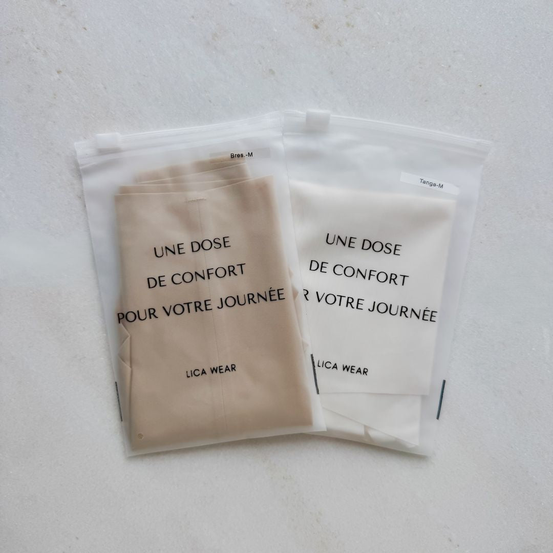 Les styles sont sélectionnés par LICA pour offrir un bel assortiment. Si vous préférez recevoir certains styles seulement (Tanga, Brésilienne, Tanga taille haute ou Culotte Bikini), vous pouvez l’indiquer dans les “Notes de commande”. Nous respecterons vos préférences dans la mesure des stocks disponibles.